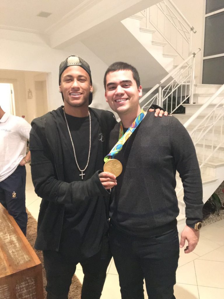 O empresário Alcino Pasqualotto, de Itapema, esteve em Guarujá, na Baixada Santista, em São Paulo, onde o craque Neymar reuniu amigos e familiares para celebrar a conquista da esperada medalha de ouro nas Olimpíadas do Rio de Janeiro.