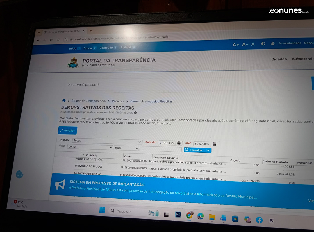 Os números não mentem, e em Tijucas, eles falam alto. O demonstrativo financeiro atualizado no Portal da Transparência revela que o município já embolsou 94,27% de tudo o que previa arrecadar em 2025. De um orçamento de R$ 349,3 milhões, a prefeitura já contabiliza R$ 329,3 milhões, um desempenho que supera projeções e confirma o fôlego econômico da cidade antes mesmo do calendário avançar.