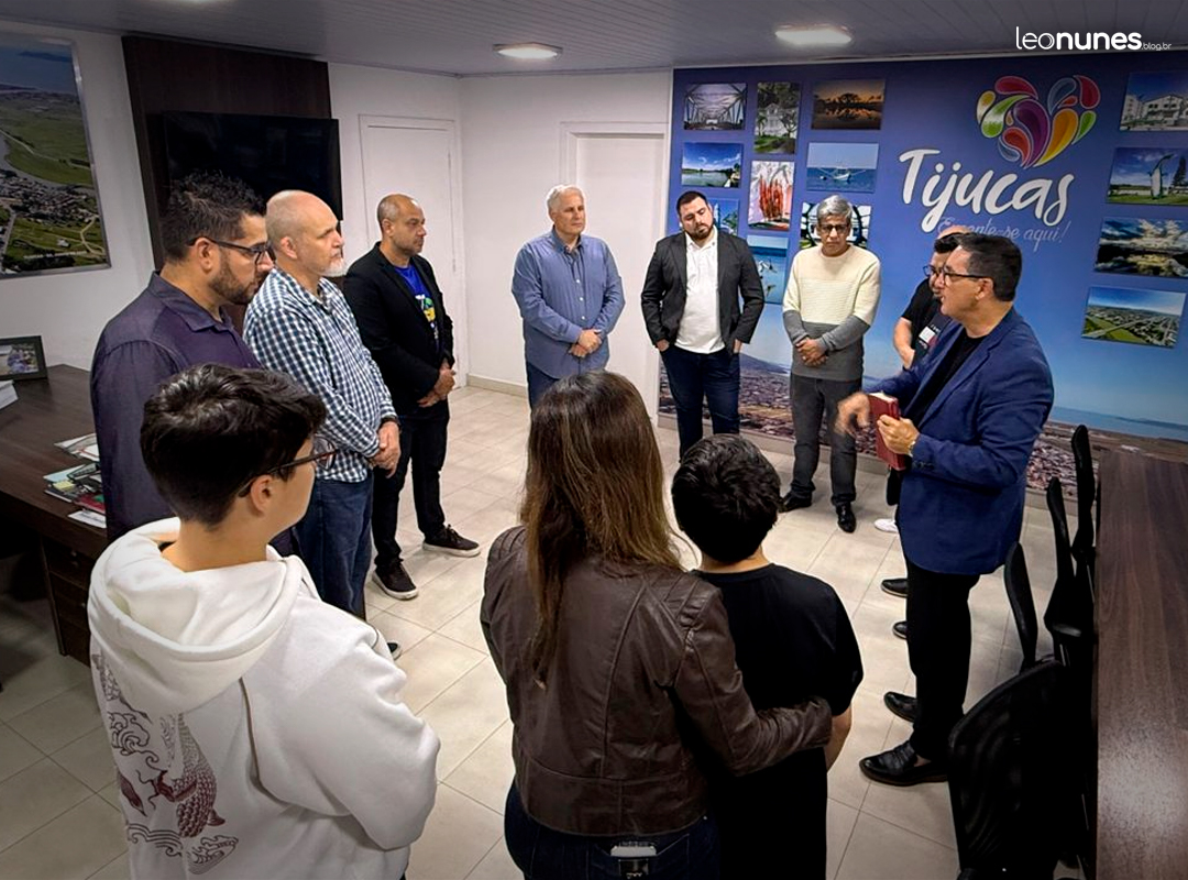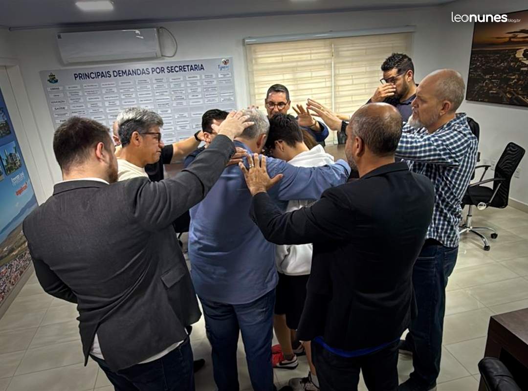 O prefeito Maickon Campos Sgrott (PP) abriu a semana de trabalho — e o mês — com momento de fé. O gabinete da Prefeitura de Tijucas virou, na manhã desta segunda-feira (6), um pequeno templo improvisado para o momento de oração conduzido por membros do Ministério Evangélico Vinde Amados Meus (Mevam) e da Marcha para Jesus.