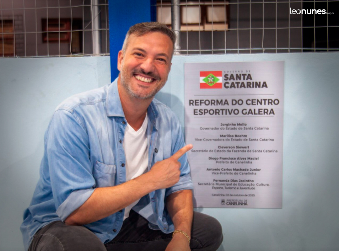 O prefeito de Canelinha, Diogo Francisco Alves Maciel (PL), segue em ritmo acelerado de entregas. Na noite desta quinta-feira (02), foi a vez da inauguração da reforma do centro esportivo na comunidade da Galera, palco de festa e vitrine política tanto para o dono da caneta quanto para a secretária de Educação, Fernanda Dias Jacintho, já colocada no tabuleiro como “prefeiturável”.