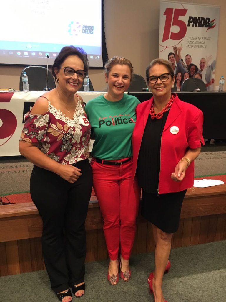 No encontro estadual do PMDB Mulher, sábado (18), na Alesc (Assembleia Legislativa de Santa Catarina), Tijucas esteve representada pela vereadora Fernanda Melo, que, na foto, aparece emoldurada pela deputada estadual Dirce Heiderscheidt e pela secretária estadual de Justiça e Cidadania, Ada de Luca.