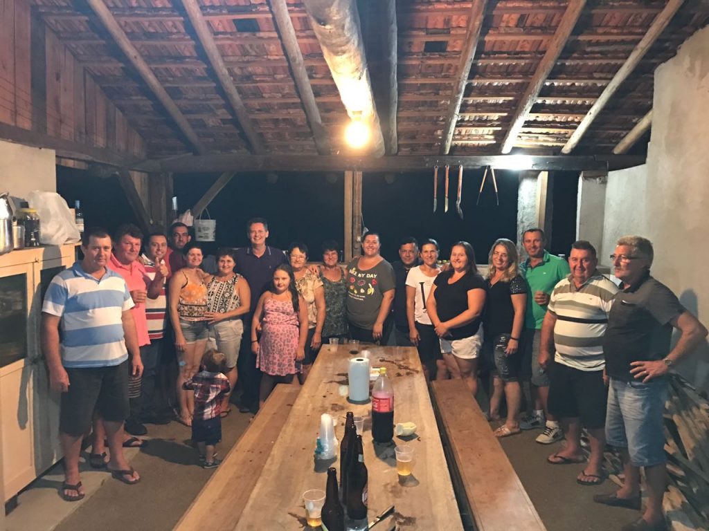 Foto: DivulgaçãoVisitas à Secretaria Municipal de Ação Social e ao Sindicato dos Trabalhadores Rurais de Tijucas, além de uma entrevista concedida ao Portal VipSocial e uma confraternização com a família Meschke (foto), em Oliveira, marcaram a passagem de Kuhlmann, guiado por Muraro, nessa recente incursão à Capital do Vale.