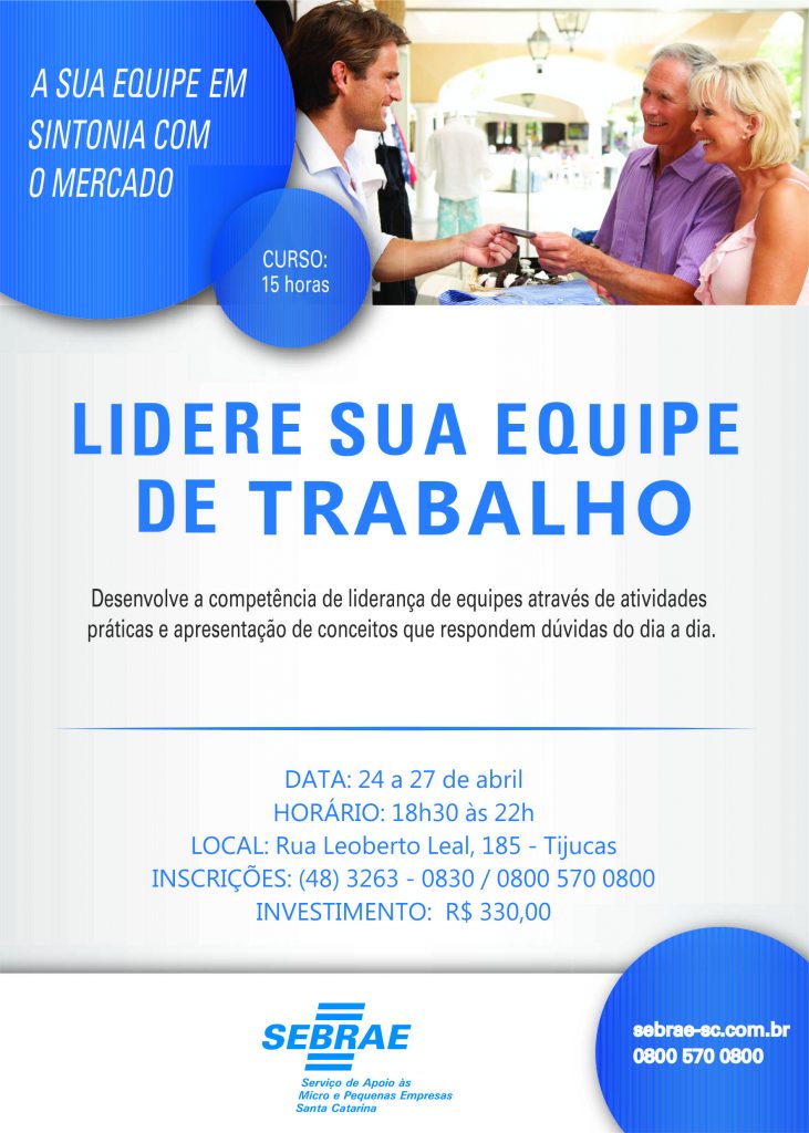 O perfil do líder atual, o planejamento como gerador de resultados na organização de uma equipe, os estilos de liderança mais adequados para cada situação, a comunicação como fonte de conflito ou produtividade, as formas de identificar e resolver problemas na empresa, o uso do poder e o relacionamento como impulso no trabalho de equipe são itens do curso “Lidere Sua Equipe de Trabalho”, proposto pelo Sebrae/SC para a região.