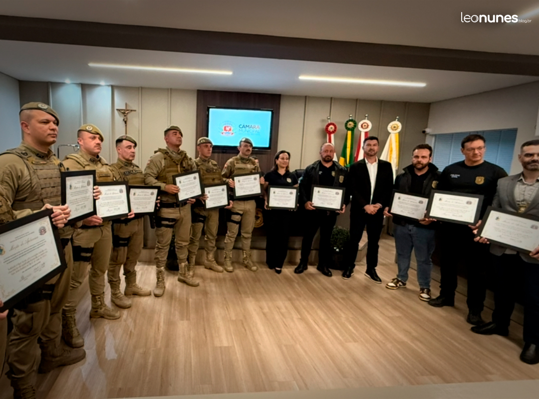 Em São João Batista, por exemplo, as sessões viraram quase cerimônias protocolares de reconhecimento. Nesta segunda-feira (20), o Legislativo entregou Moções de Aplauso às Polícias Civil e Militar e ao Samu. A iniciativa partiu do presidente da Casa, Fábio Norberto Sturmer (PP), e do vereador Alexandre Peixer Baltazar (UNIÃO). Foram 13 policiais agraciados, entre civis e militares — uma solenidade que, de tão recorrente, já parece parte do calendário oficial. Na semana anterior, os professores foram os homenageados da vez.