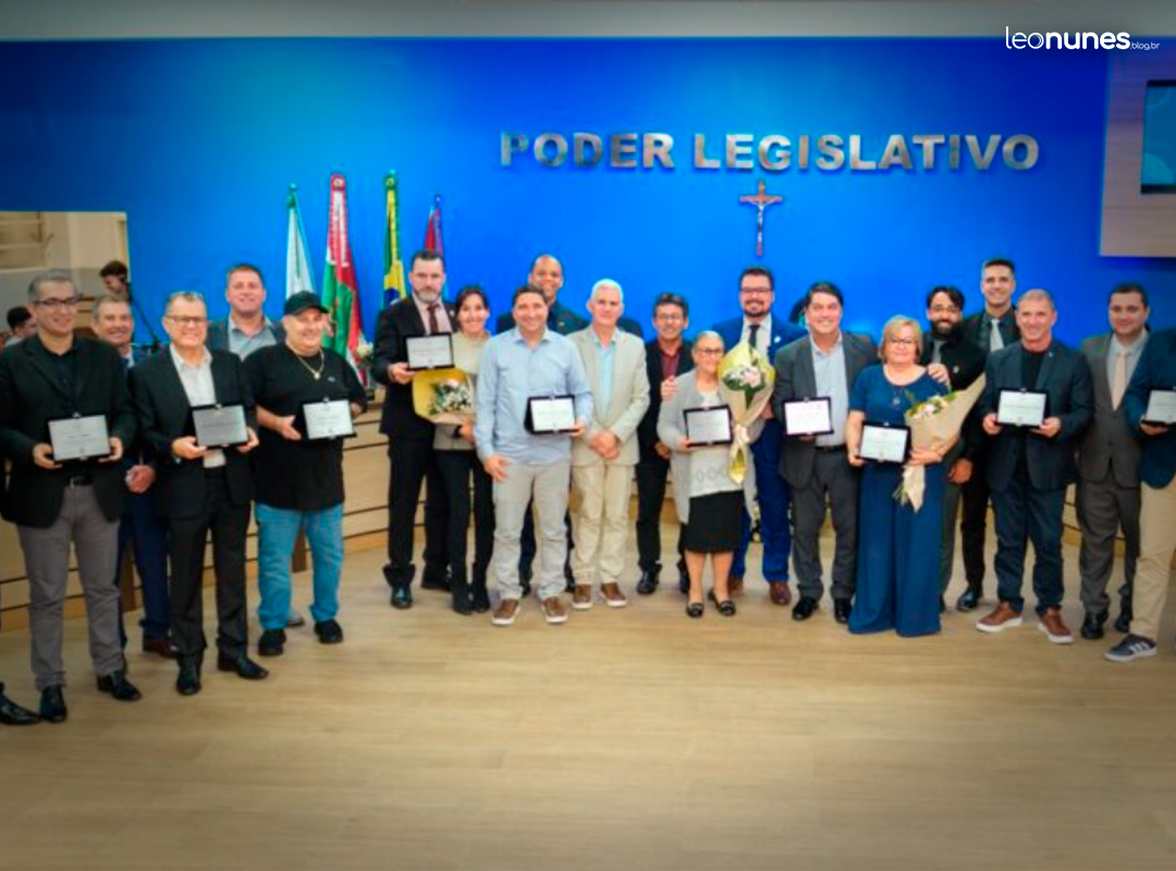 Em São João Batista, por exemplo, as sessões viraram quase cerimônias protocolares de reconhecimento. Nesta segunda-feira (20), o Legislativo entregou Moções de Aplauso às Polícias Civil e Militar e ao Samu. A iniciativa partiu do presidente da Casa, Fábio Norberto Sturmer (PP), e do vereador Alexandre Peixer Baltazar (UNIÃO). Foram 13 policiais agraciados, entre civis e militares — uma solenidade que, de tão recorrente, já parece parte do calendário oficial. Na semana anterior, os professores foram os homenageados da vez.