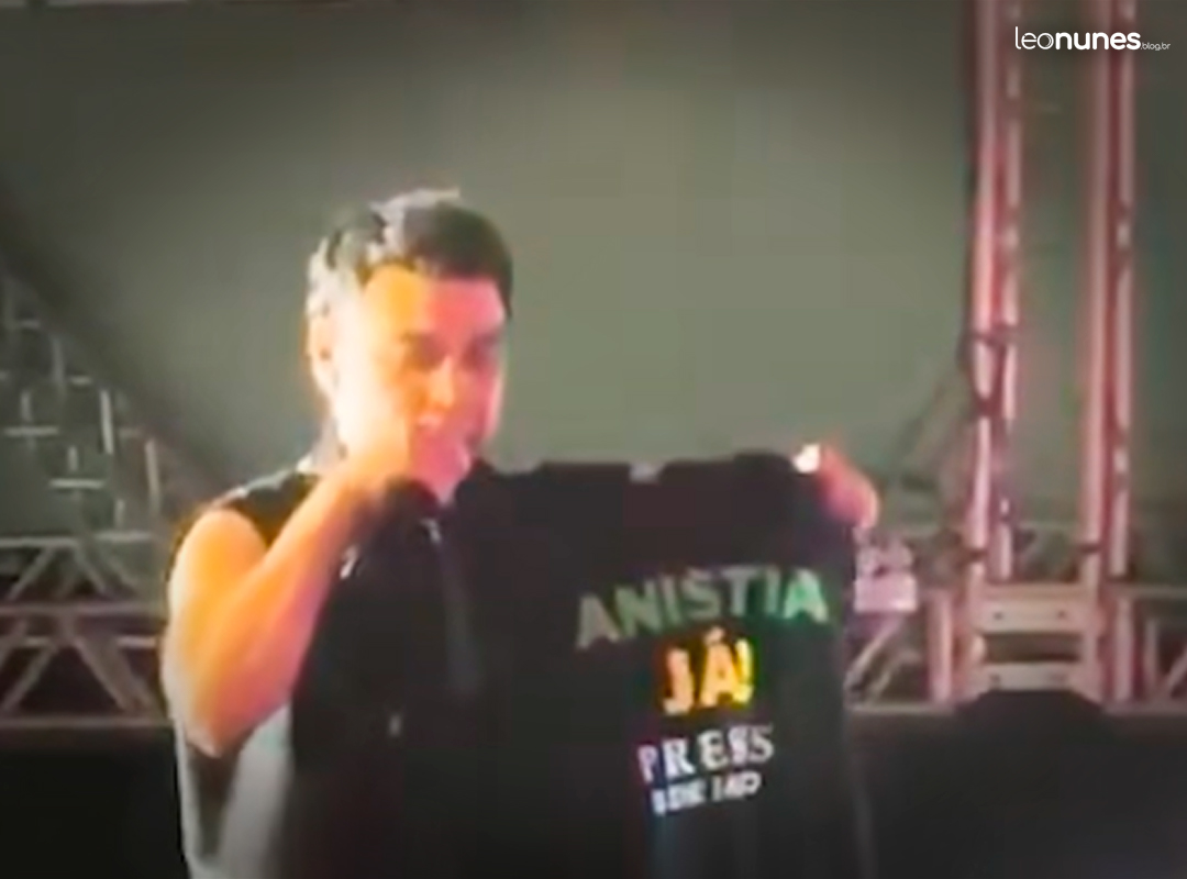 Em meio à apresentação, o artista recebeu de um fã uma camiseta com os dizeres “Anistia já, presos 8 de Janeiro” e, sem hesitar, ergueu a peça diante do público. O gesto, acompanhado de aplausos e gritos de apoio, fez referência aos envolvidos nos atos de 8 de janeiro de 2023, quando as sedes dos Três Poderes foram invadidas e depredadas em Brasília.